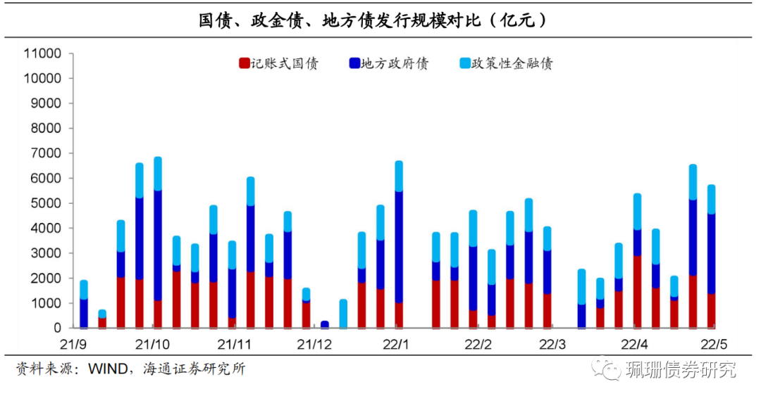上周,利率债净融资额3137亿元,环比减少2044亿元,总发行量5736亿元,环比减少727亿元。其中,记账式国债发行1466亿元,环比减少738亿元;政金债发行1071亿元,环比减少159亿元;地方债发行3199亿元、为年内第二高水平,环比增加171亿元。截至5月20日,未来一周国债计划发行540亿元,环比下降;地方政府债计划发行4095亿元(为今年以来第二次周发行规模超4000亿元),环比上升。![]()