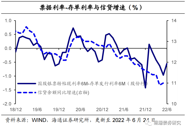 票据利率、票据-存单利差、票据贴现发生额均持续回升,显示信贷或继续改善:2018年12月-2022年5月,贷款余额同比增速与票据利率相关性高达0.75,显示票据利率走高往往意味着票据融资规模趋降、信贷投放趋于改善。为了更好分析票据的信贷属性,我们以6M国股银票转贴现利率-6M股份行存单发行利率作为分析指标,数据分析显示票据利率-存单利率的利差与信贷余额增速依然有较好的相关性、相关系数约为0.67。此外,高频数据票据贴现发生额的月均值与票据融资当月值的走势也基本一致。