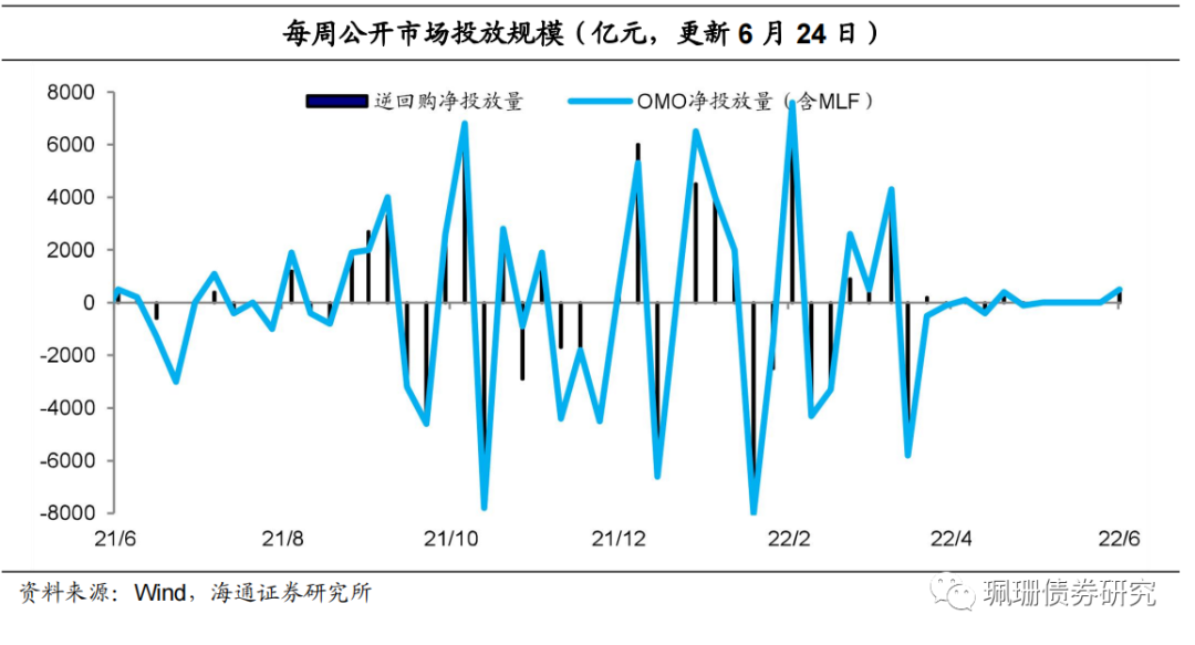 预计6月最后一周,债市走势依然震荡偏强。(1)经济缓慢修复,地产汽车耗煤数据均向好,票据利率和贴现发生额回升显示信贷改善可期。(2)6月最后一周政府债净供给压力环比或将明显回落,且资产荒逻辑尚存。(3)日前央行重提闸门,为过去十年以来政策基调总结,我们认为后续货币政策转变概率较小。(4)上周资金利率整体抬升,6月最后一周政府债缴款压力仍大但缴税期已过,预计资金面均衡偏松的格局仍将延续。(5)随着美联储政策不断收紧,美债利率后续仍将趋于上行,中美利率倒挂加深尚未结束。总的来看,经济、信贷、股市和海外的利空徐徐而来,债市利率下行空间受限,除非货币政策进一步超预期宽松;而资金面均衡偏松、资金利率仍处低位、期限利差和套息价差依然偏高,也意味着债市利率趋势性上行的空间不大,故债市震荡行情继续演绎。后续建议关注资金利率中枢的变化,若资金利率大幅持续性反弹,或是窄幅震荡行情的转折点,但我们认为利率飙升的概率不高。此外,财政部部长刘昆表示“加大宏观政策调节力度,谋划增量政策工具”,后续可关注相关增量政策的出台等,我们此前在《20220528:特别国债增发的历史回顾与展望》中表示“若增发特别国债,Q3或为合适的发行窗口期”。我们维持6月10Y国债利率在2.70%-2.90%区间震荡的观点,下半年利率走势或先上后下(《震荡未歇,曲径徐行——2022年利率债中期投资策略》),建议配置户在近期长债利率中枢抬升阶段关注配置机会。
