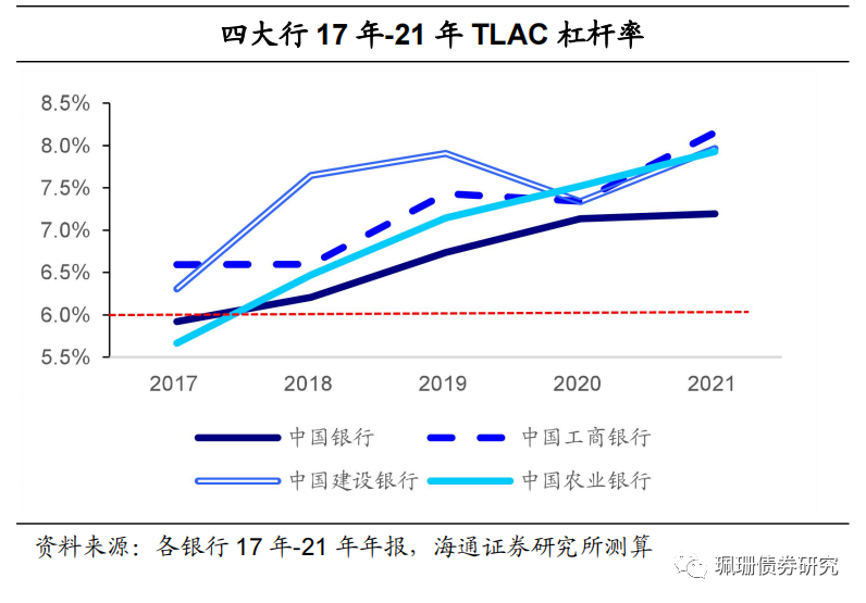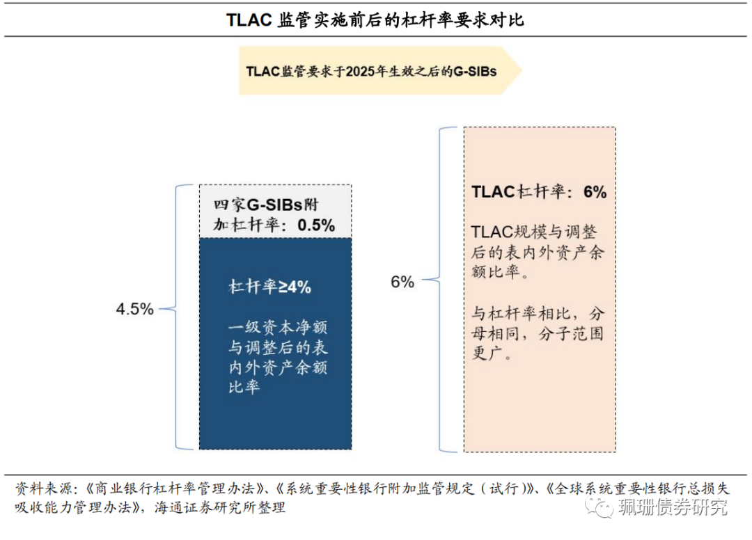 TLAC监管之后,2025年TLAC杠杆率需达到6%。但是,TLAC杠杆率的分子为TLAC规模,较杠杆率的分子(一级资本净额)涵盖范围更广。