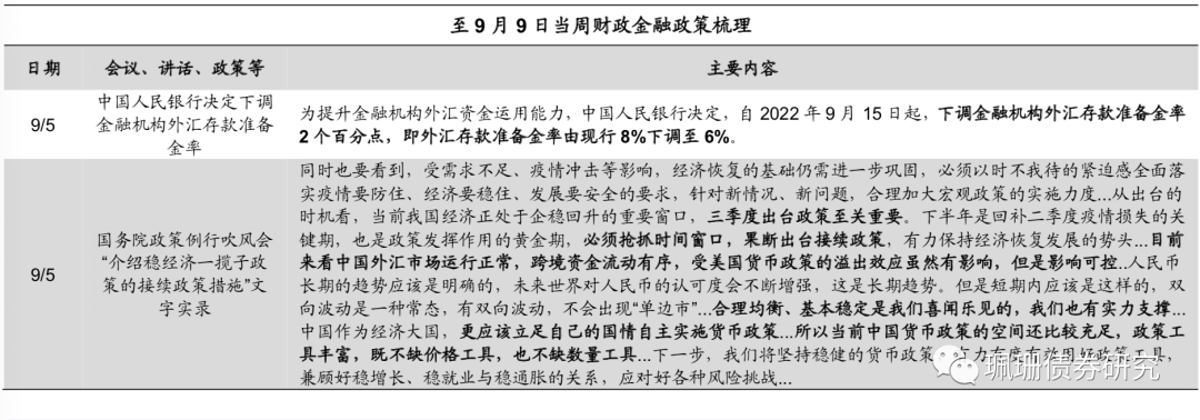 长短端利率小幅上升或持平。上周资金面仍保持宽松,9月5日央行下调金融机构外汇存款准备金率以稳定人民币汇率,7日公布的8月进出口数据不及预期,9日公布的通胀数据低于预期,8月社融增速如期回落、信贷结构改善,但市场整体反映平淡,全周长短端利率变动不大。