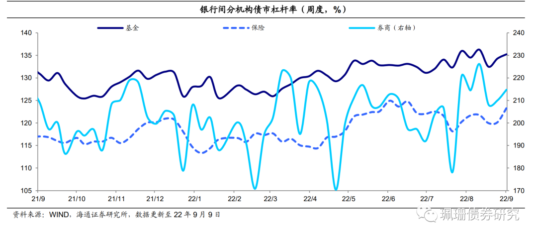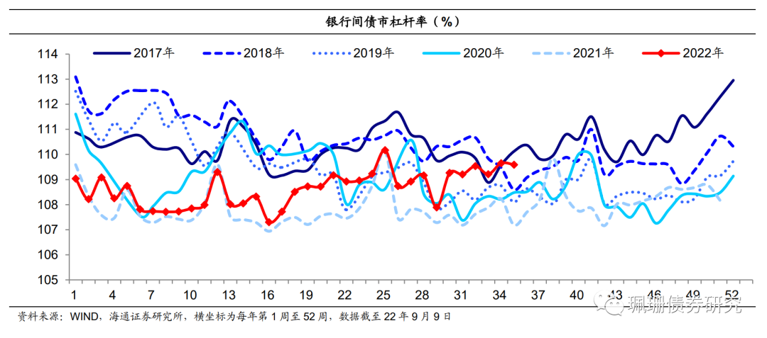 (6)上周,银行间杠杆率环比略微下行、同比继续加杠杆。至9月9日当周银行间债市杠杆率为109.6%,环比略微下行0.01个百分点、同比继续上行2.4个百分点。