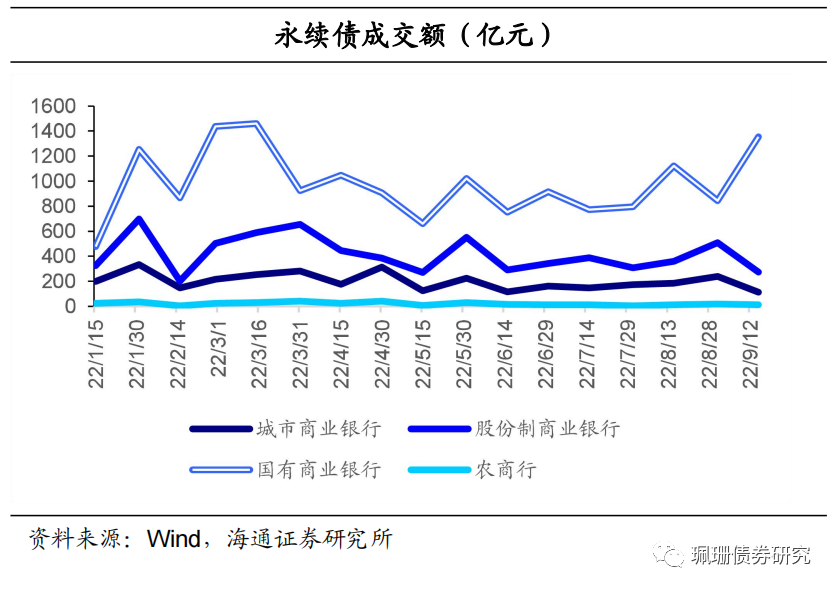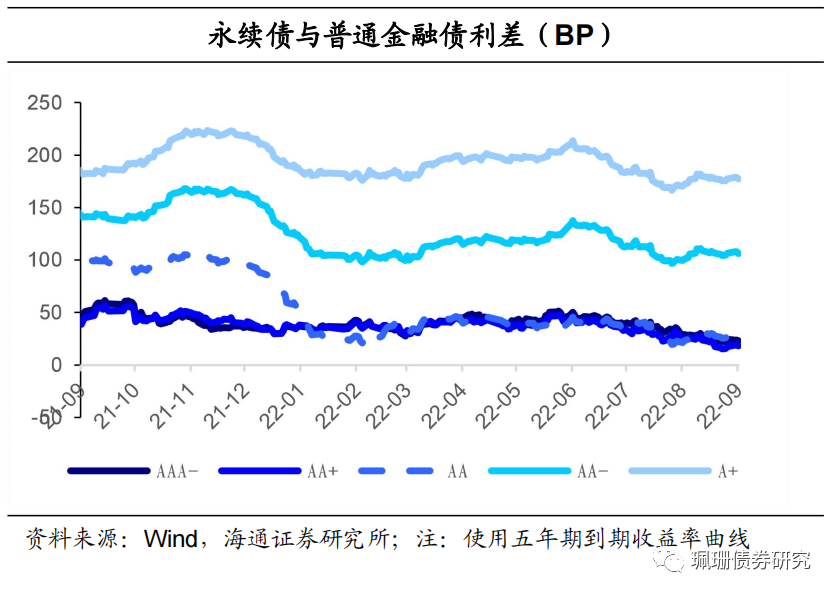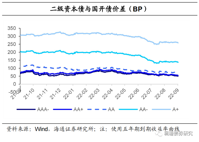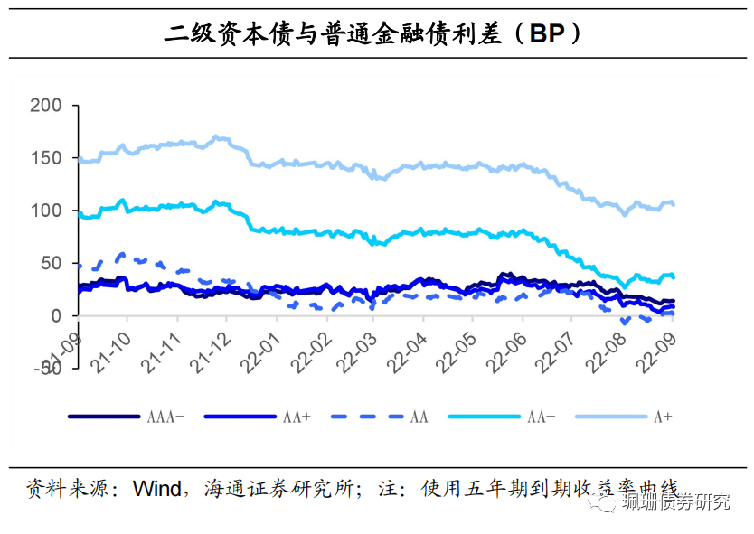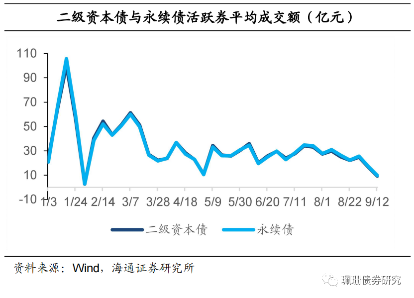 利差走势:与国开债利差小幅收窄。9月前半月,二级资本债、永续债与国开债和普通金融债利差均整体小幅收窄;永续债与二级资本债利差继续整体走阔。