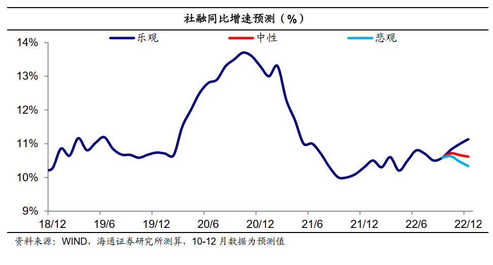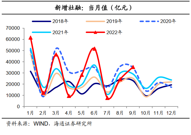 (1)社融增速超预期回升。9月社融存量同比增速转为回升0.1个百分点至10.6%,当月新增社融规模高达3.53万亿元、高于2018年~2021年同期水平,高于wind一致预期值将近7300亿元。![]()