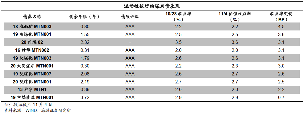钢铁、采掘行业利差走扩。具体来看,截至11月4日,AAA级钢铁债信用利差平均为115BP,较前一交易周末上行15BP;AAA级采掘债(主要是煤炭开采)信用利差平均为55BP,较前一交易周末上行1BP。