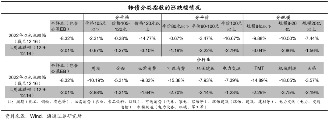 上周(2022年12月10日至2022年12月16日,下同)市场回顾:转债指数下跌