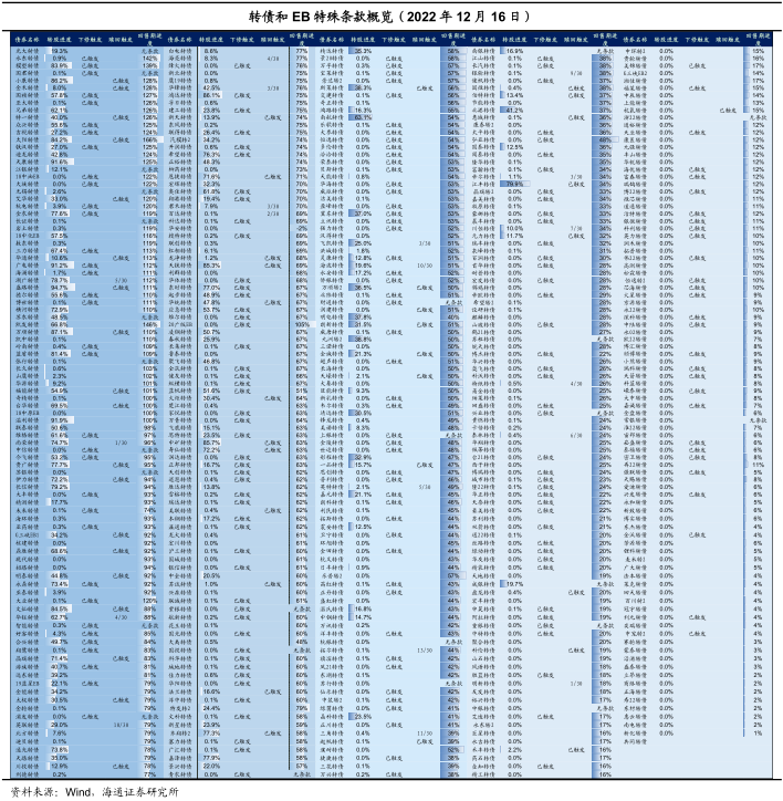 目前有387只个券进入转股期,其中盛路、溢利等4只转债转股超过90%,万顺、小康等9只转债转股超过80%,江丰、长信等17只转债转股超过70%,台华、鼎胜等9只转债转股超过60%,国祯、18中化EB等10只转债转股超过50%。