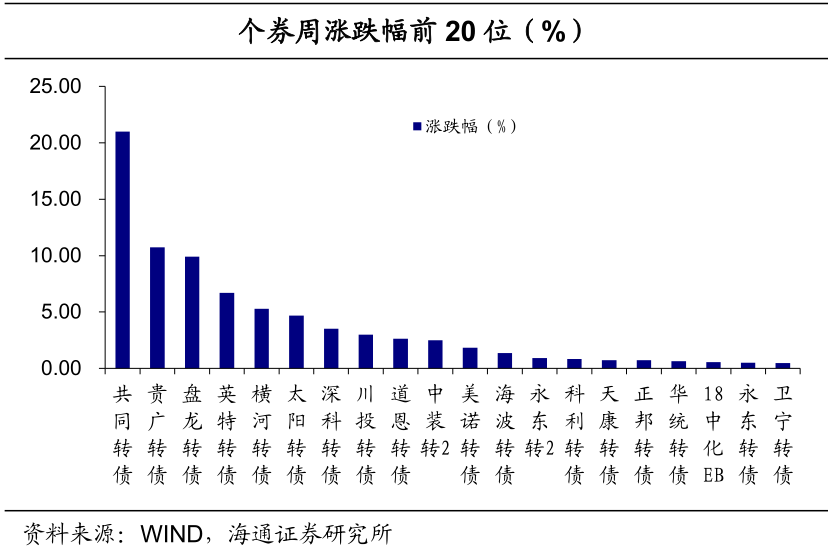 个券表现,跌多涨少。个券27涨0平444跌。个券涨幅前5位分别是共同转债(21.00%)、贵广转债(10.74%)、盘龙转债(9.91%)、英特转债(6.69%)和横河转债(5.29%)。跌幅前5位分别是万顺转债(-15.45%)、上能转债(-14.68%)、美联转债(-14.21%)、万顺转2(-14.13%)和盛路转债(-13.31%)。正股表现,跌多涨少。正股105涨4平362跌。正股涨幅前5位分别是华正新材(19.19%)、英特集团(18.22%)、道恩股份(18.08%)、康泰医学(15.13%)和贵广网络(13.29%)。跌幅前5位分别是*ST蓝盾(-18.97%)、天奈科技(-17.73%)、泰林生物(-14.26%)、万孚生物(-12.56%)、上能电气(-12.33%)。2.2 板块以下跌为主
