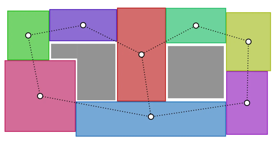 拓扑地图(Topological Map)使用节点和边来表示环境,其中节点表示重要位置(如拐角、门口),边表示这些位置之间的可达路径。拓扑地图注重表示环境的连接关系,而不是具体的几何细节。这种地图表示方法适用于大型、复杂环境中的高效路径规划和导航。个人简单理解为,是一种表示拓扑关系、不存在准确距离信息的地图,例如:我家地图是,客厅在中间,周围连着卧室、书房、厨房、卫生间,书房又连着阳台。