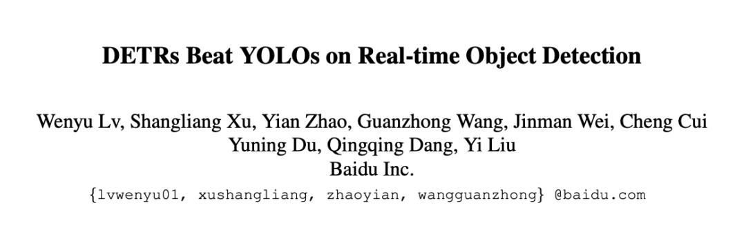 众所周知,实时目标检测(Real-Time Object Detection)一直被YOLO系列检测器统治着,YOLO版本更是炒到了v8,前两天百度飞桨的PaddleDetection团队发布了一个名为 RT-DETR 的检测器,宣告其推翻了YOLO对实时检测领域统治。论文标题很直接:《DETRs Beat YOLOs on Real-time Object Detection》,直译就是 RT-DETR在实时目标检测中击败YOLO家族!