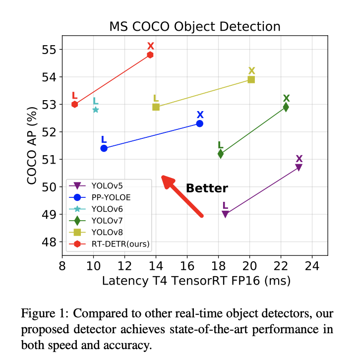 来看下RT-DETR和各大YOLO和DETR的速度对比:
