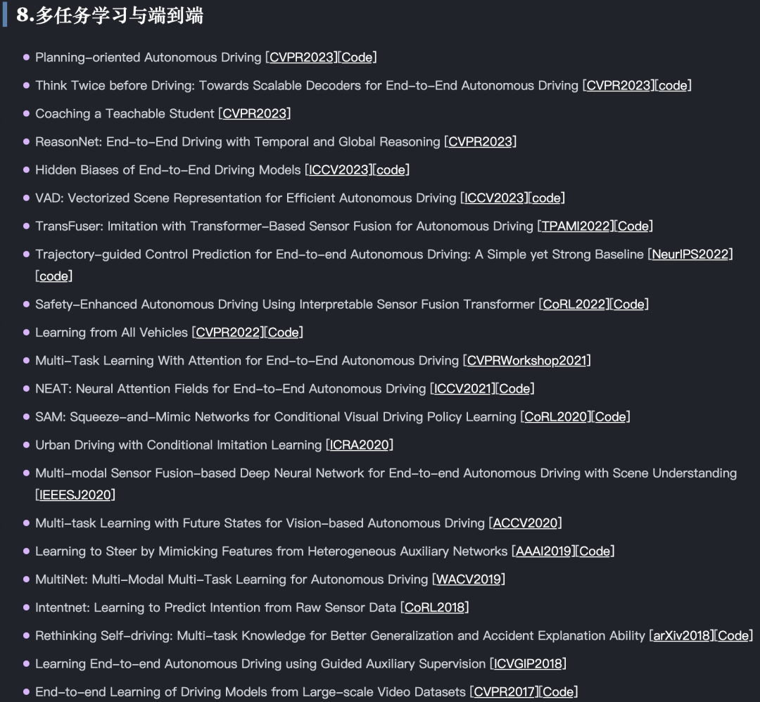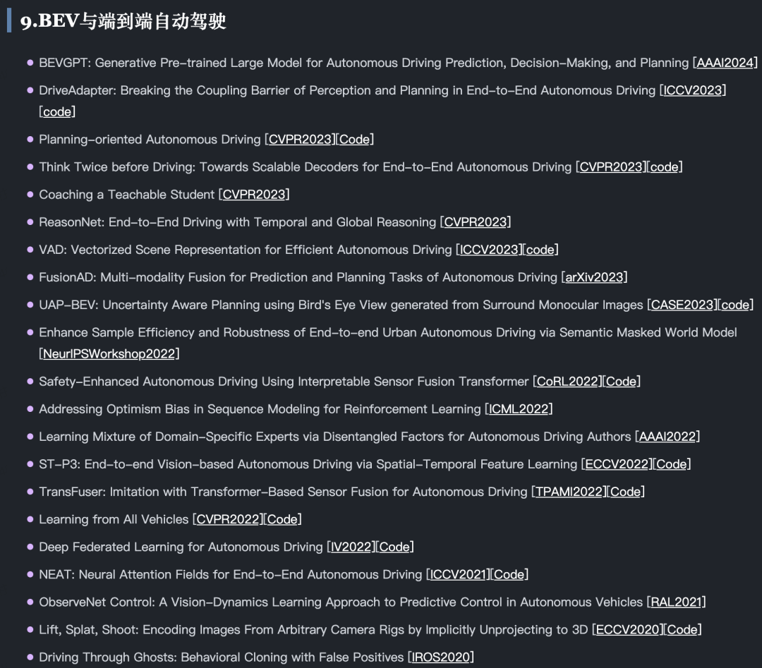当然还有很多与端到端自动驾驶相关的方向: