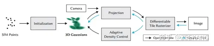 得到三维点云结构后,算法会将每个点云转换为3D Gaussian,以此为基础训练模型优化。