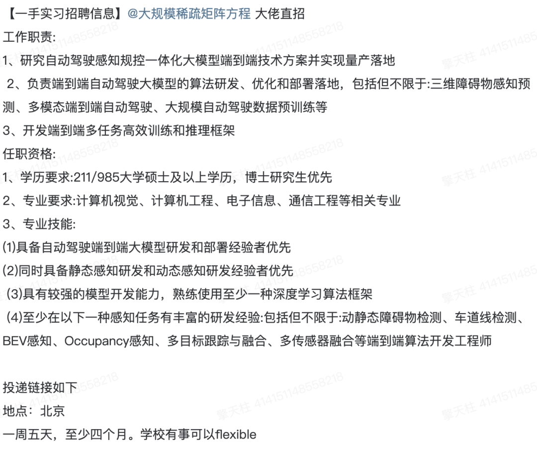 今天就带大家一起看下我们『自动驾驶之心知识星球』关于大模型和端到端自动驾驶的相关内容和前沿讨论!涉及综述/数据集/前沿算法的汇总、科研界顶级大佬直播、岗位招聘、日常讨论、从业感悟等等,应有尽有~