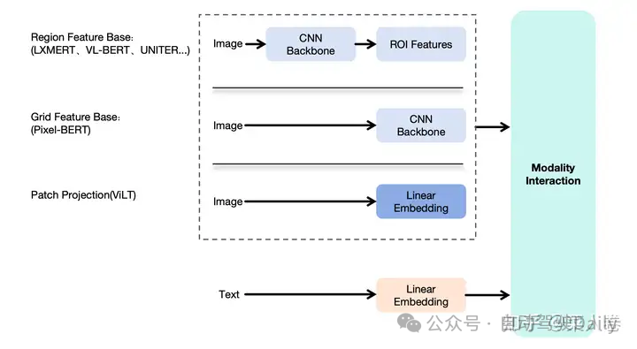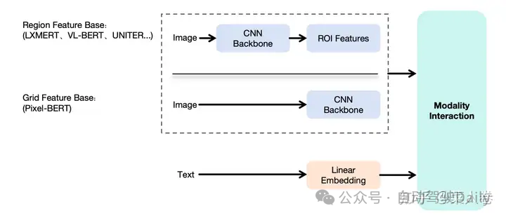 UNITER称得上是Region Feature Based多模态预训练的集大成者,同时期的大多数工作也多是类似结构上的修补或增强。但也不乏另辟蹊径的工作,其中以Grid Feature Based相关工作最具影响力。