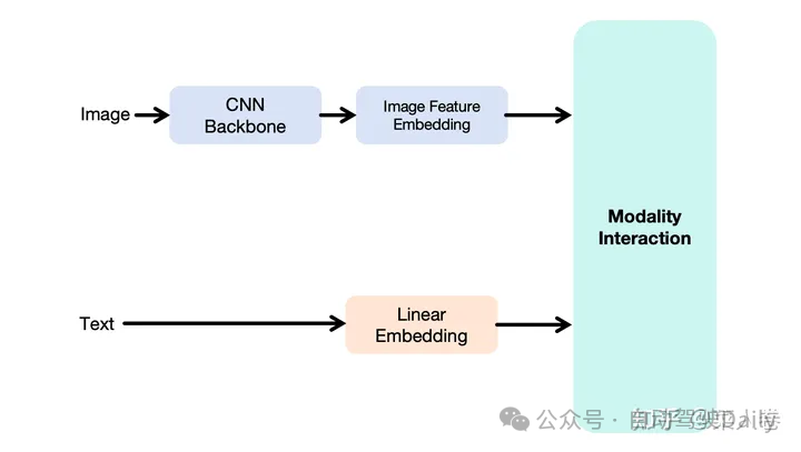 我们以2019年作为粗略分界点,在此之后BERT的训练范式开始流行,多模态方向上的研究热点则是借鉴BERT的成功,使用Transformer网络(特指Transformer Encoder)作为Modality Interaction模块把视觉和自然语言进行特征融合,并通过大规模预训练来学习得到多模态表征;而在此之前的方案通常是简单的多层全连接网络实现,我们不多赘述。