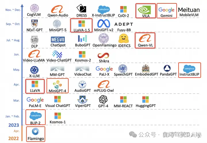Flamingo凭借其出色的效果,吸引了许多研究者对于多模态大模型的注意,但当时这种规模的模型训练不是谁都能玩的起,因此并没有引起特别火热的跟风潮。直到ChatGPT的出现,让人逐渐接受了大模型这条道路的正确性,以前觉得自己玩不起的机构,砸锅卖铁拉投资也愿意投入,自此相关的开源研究开始如火如荼。