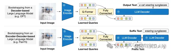 在众多开源工作中,BLIP-2以及与之一脉相承的InstructBLIP算是早期的探路者之一,我们可以从这两个工作开始讲起。