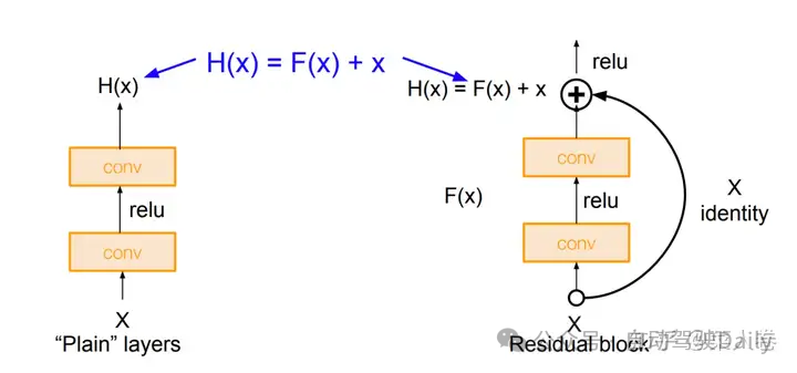 随着研究的深入,神经网络的层数也出现了爆发式地增长,由此也不可避免的带来梯度消失和梯度爆炸的问题,使得模型训练的困难度也随之提升。一种解决方法是将神经网络某些层跳过下一层神经元的连接,隔层相连,弱化每层之间的强联系。这种神经网络被称为Residual Network(ResNet)残差网络,网络结构的原理是将卷积层的堆叠,替换成跨层连接的模块,如图3所示。