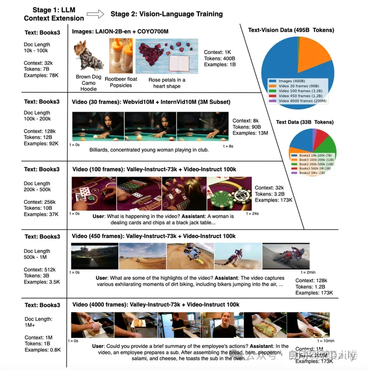 LWM希望完成的任务和Gemini十分相似,核心是超长上下文理解的多模态大模型。凭借支持1M的token输入,LWM可以对超过一小时的视频进行理解,在Gemini 1.5之前几乎是多模态大模型中最长的上下文输入(之一)。LWM的主要工作要点包括:
