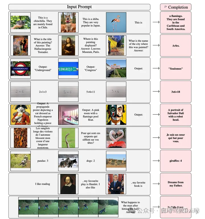如今GPT-4代表着多模态大模型的顶尖水平,但在此之前,甚至在ChatGPT之前就已有相关探索工作,其中谷歌的Flamingo最具当前主流技术雏形。事实上,Flamingo更像是图文多模态领域的GPT-3,不同的是它支持图文上下文的输入,通过In-Context Few-Shot方式完成任务。Flamingo同样支持视频帧序列作为输入,通过Prompt指令完成Video理解任务。