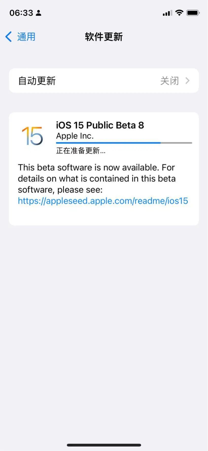 据网友线索投递,今日,苹果推送了iOS 15 Public Beta 8,这可能是最后一个iOS 15的公测版。