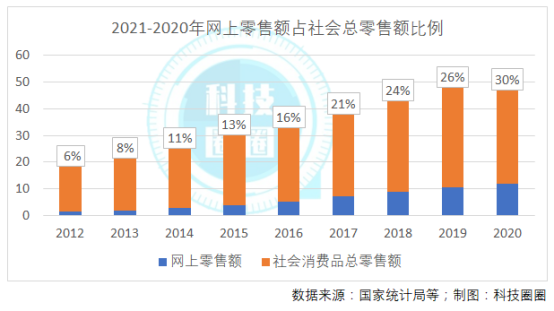 根据历年的数据来看,网上零售额的占比在飞速增长,不过离马云的预期相差甚远。尤其在2020年,特殊的形式引发了数字产业的大爆发,但网购零售额占比的增幅却没有大的增长,而根据前文数据,在今年上半年,更是下跌至23.7%。虽然与下半年有十一、双十一、双十二、圣诞节等大幅促销,但在明年实现50%的占比还是略显缥缈的愿望。