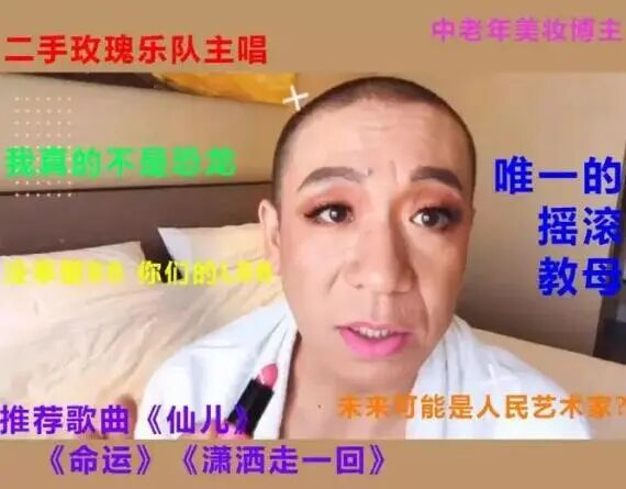 在音乐之外,他以美妆博主“出道”,上仿如来佛祖,下仿罗文姬,二手玫瑰在互联网时代,竟然靠化妆火出了圈。