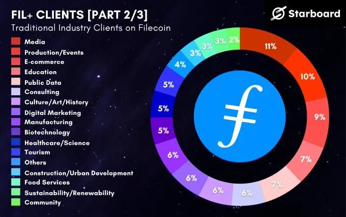 1/ Filecoin 的客户向网络提供多样化的数据组合。值得注意的是,很大一部分客户来自传统行业,尽管不是#Web3本地人,但他们信任#decentralized存储。Filecoin 有潜力帮助组织采用 Web3!
