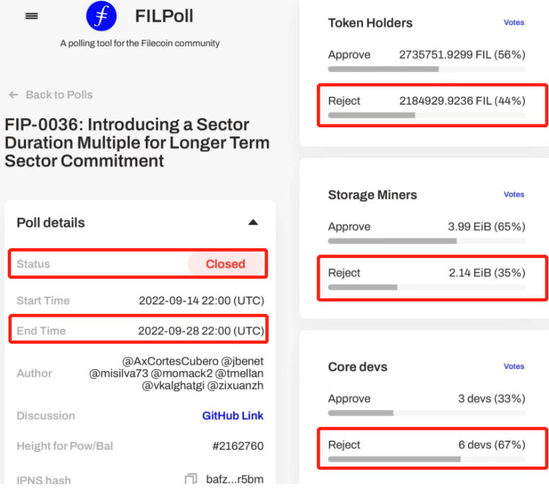 从结果看,FIL持币用户有492万个FIL参与投票,赞同与反对者分别是56%和44%;