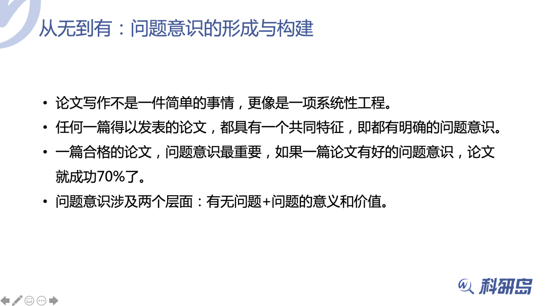 Richard学长首先分析了当前现实科研的环境,指出形成问题意识的至关重要性!如果一篇论文有好的问题意识,论文就成功70%了!