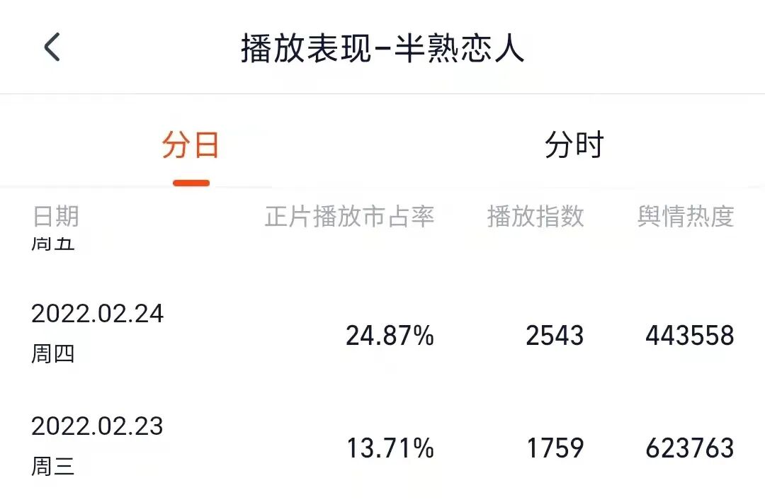 半熟恋人最高正片播放市占率达24%(图源:灯塔专业版)