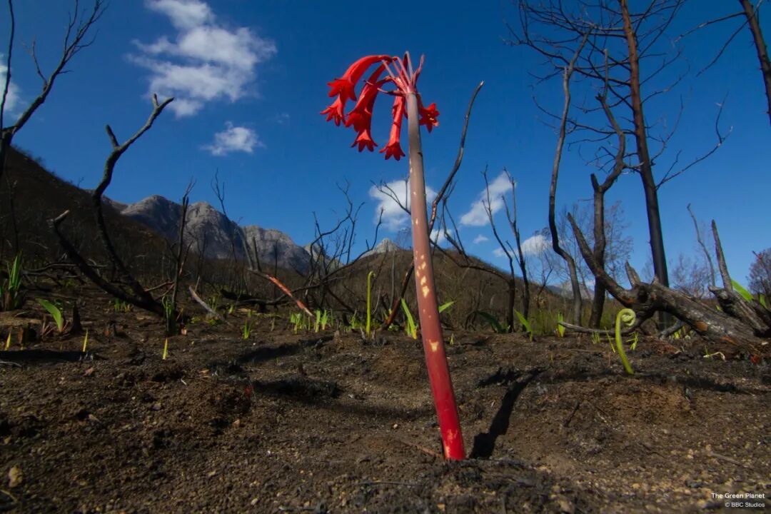看似摧毁一切的火焰,熊熊地烧得昏天黑地,竟依然不会灭绝土壤深处的生机,而垂筒花开,就是一个火红的奇迹。当几个月后,垂筒花落时,大地又会再次被一片新鲜的绿色所覆盖。