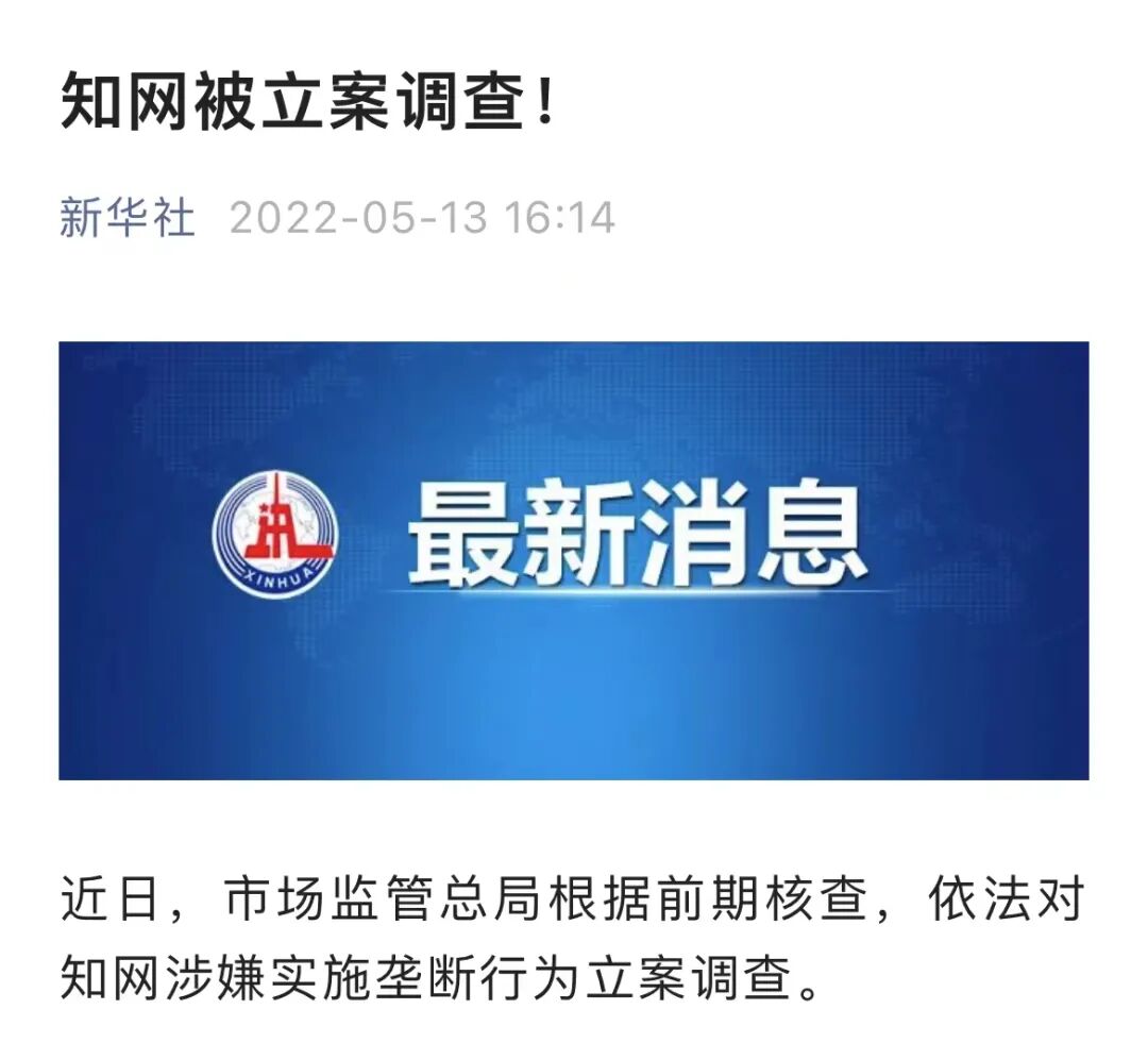 他被关注,是因为中国知网争议中的又一进展。5月13日新华社报道:近日,市场监管总局根据前期核查,依法对知网涉嫌实施垄断行为立案调查。