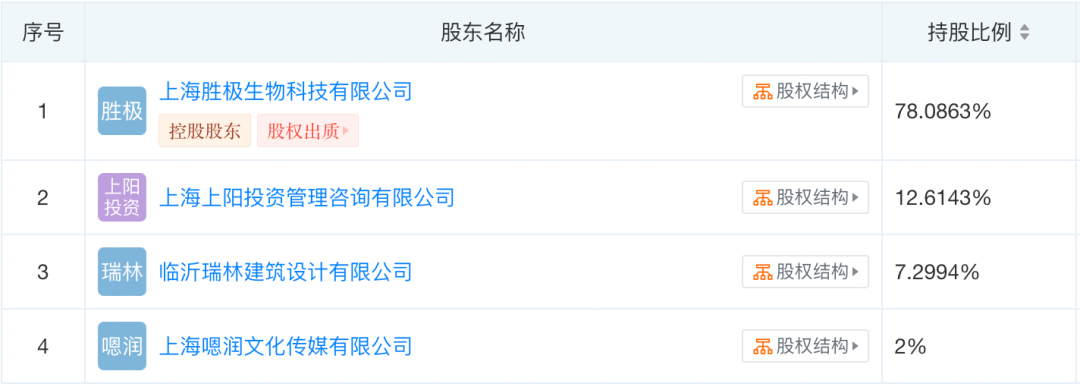 上海妆滟庭贸易有限公司其控股股东是上海胜极生物科技有限公司/图源:天眼查