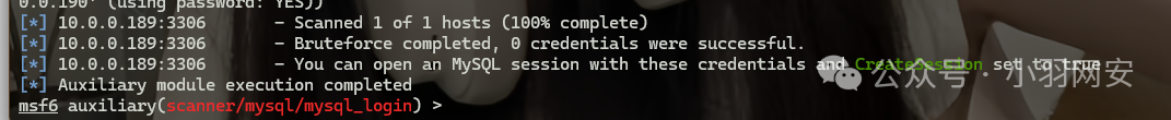 set rport 3306 //设置目标端口,为MySQL开启的端口号,默认是3306