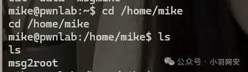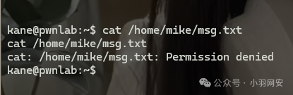 读新建取/home/mike/msg.txt文件,我们新建一个cat文件,并添加执行权限,依次执行以下命令