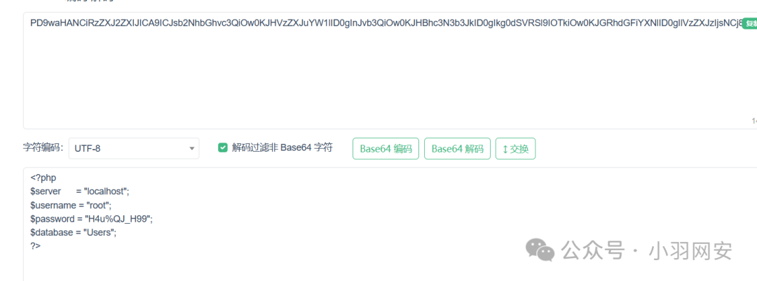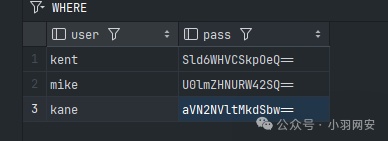 找到指定表名就能看到用户密码了,密码有==号的话,那么大概率就是base64编码