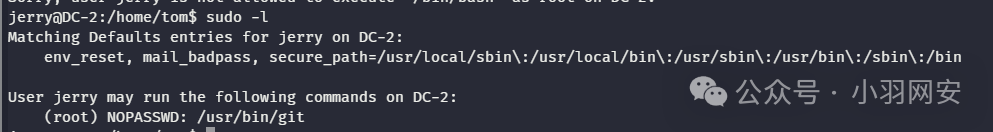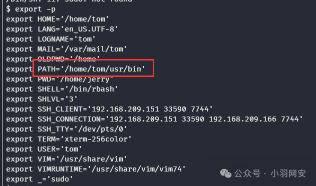 这里有一个sudo可以用,rbash逃逸中的必要条件