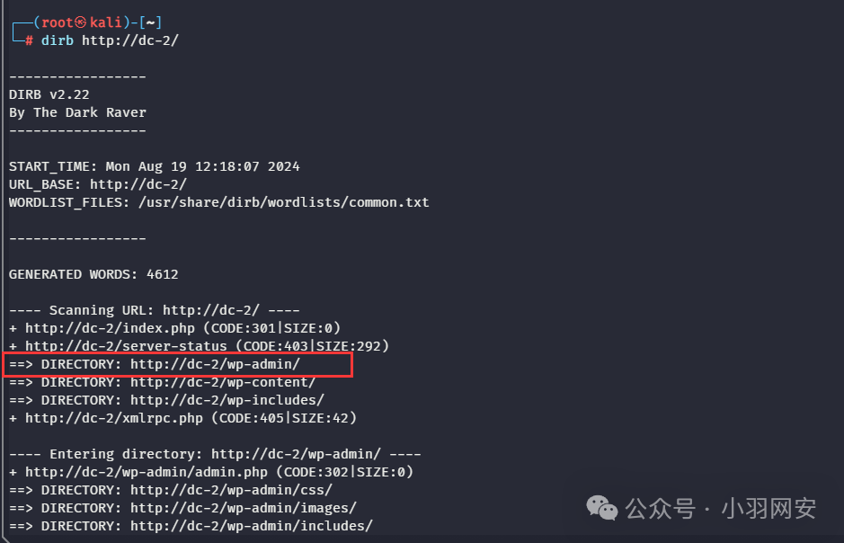 看目录扫描结果,这是一个wordpress网站,有一个后台界面wp-admin
