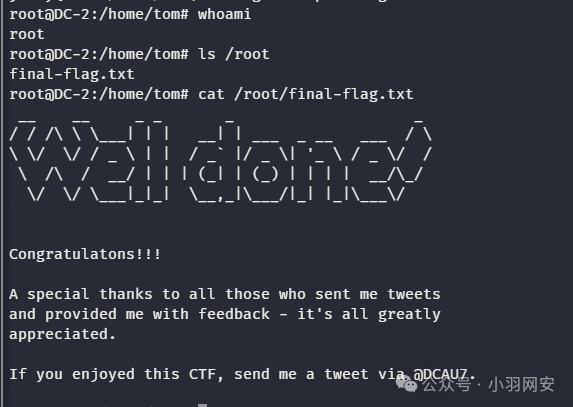 本文详细介绍了利用Kali Linux对Vulnhub的DC-2靶机进行渗透测试的过程。通过nmap发现靶机及开放端口,利用cewl和wpscan工具生成字典,并成功爆破WordPress后台账号密码。面对rbash限制,通过环境变量修改实现逃逸,并利用git和sudo提权获取root权限。整个流程覆盖了信息收集、漏洞利用、权限提升等多个阶段,展示了全面的渗透测试技巧。