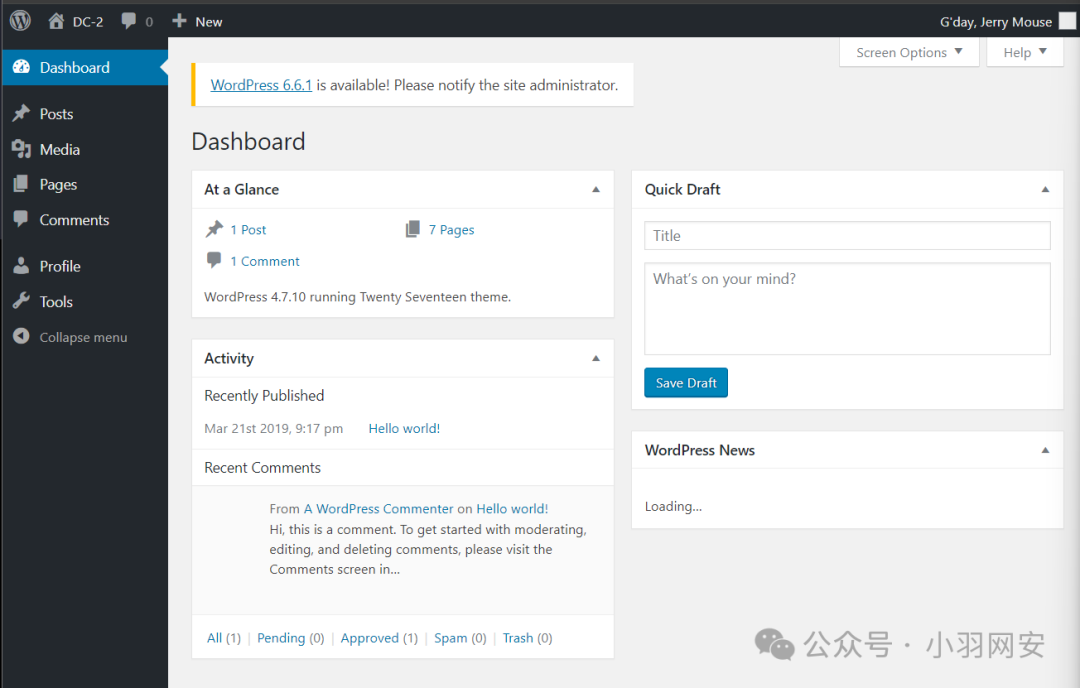 本文主要讲解了渗透测试中的完整渗透测试流程,主要介绍了【wpscan】、【cewl】、【rbash逃逸】的使用技巧,靶场为vulnhub的机器大家可以自行下载,如果文章哪有不对,还请师傅们留言指出,谢谢您。