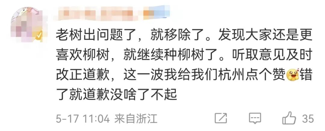 桃红柳绿,是杭州西湖的经典植物景观。近期,杭州西湖断桥边部分柳树移栽换种月季花,引发争议。图为拼接照片,左图为未移栽柳树前的北山街断桥东侧至保俶路口路段的景象,右图为柳树移栽换成月季花后的风景。 阿农 摄有网友表示,无论是“钱塘风月西湖柳”,还是“西湖十景”中的柳浪闻莺,柳树早已成为西湖的一个文化符号。5月13日,记者从浙江杭州西湖西溪管委会获悉,北山街断桥至保俶路段沿湖7棵柳树已补植完成。关于近期杭州民众反映的柳浪闻莺入口区域已栽种的40棵柳树的树径偏小、与原貌差异较大一事,景区也于14日全部更换到位,新更换的柳树,与原栽柳树品相接近。得知西湖的柳树回来了,不少市民游客赶至景区,杭州市民杨先生向记者表示,西湖边的柳树,已不单单是一种植物。对柳树的时刻关注,也反映了杭州人对西湖深深的眷恋和偏爱。“杭州人对西湖的保护意识很强的。”据“杭州发布”消息,16日,浙江省委常委、杭州市委书记刘捷在“西湖风貌和文化保护”民意恳谈会上表示,代表市委、市政府对大家多年来对杭州工作的关心支持表示感谢,也为西湖沿湖部分柳树移栽事件的发生表示歉意。刘捷说,西湖是杭州的文化名片,是杭州区别于其他城市的独特标识,也是所有杭州人心中的精神家园。西湖沿湖部分柳树移栽,破坏了城市自然生态环境和历史文化风貌,伤害了人民群众对杭州的美好记忆和深厚感情,教训十分深刻。他强调,要本着敬畏历史、敬畏文化、敬畏生态的态度,更加坚定地扛起保护西湖的使命担当。在此之前,杭州西湖西溪管委会副主任陈林13日也就此事回应并致歉。陈林说,“事情发生后,我们也在进行深刻地反省,我们的工作虽然按照了常规的流程,但有很多做得不到位的地方,比如没有考虑到‘西湖无小事’这个重要理念,没有考虑到市民对西湖柳树的情结,另外,我们对西湖文化的认识还不足,在此,我们对大家表示歉意。”西湖的一草一木,一砖一瓦,都应该被珍爱。对于今后西湖柳树等草木的相关工作安排,他透露,该景区将加强西湖柳树的管养和监测。同时举一反三进行排查,对西湖的一草一木进行梳理。此外,还将进一步强化审批和流程公示制度,加强和民众的沟通。![]()