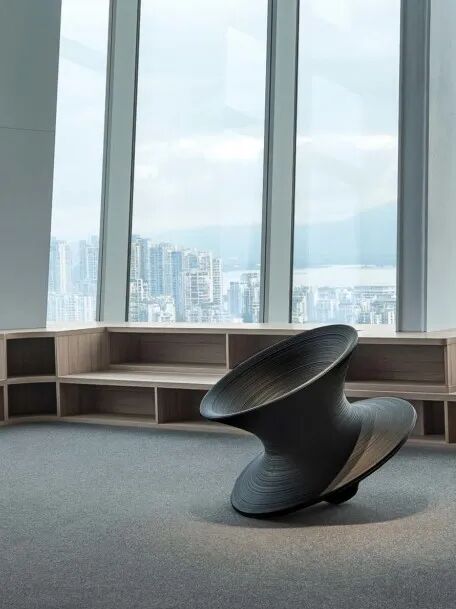 工作之余来到茶水间补给小憩,落地窗外城市的繁华与办公室内的安静互相映衬。隔断旁生机盎然的绿植仿佛在悄然提醒,个人的放松岛屿可以不只是在心中,也在与工作息息相关的场所里。