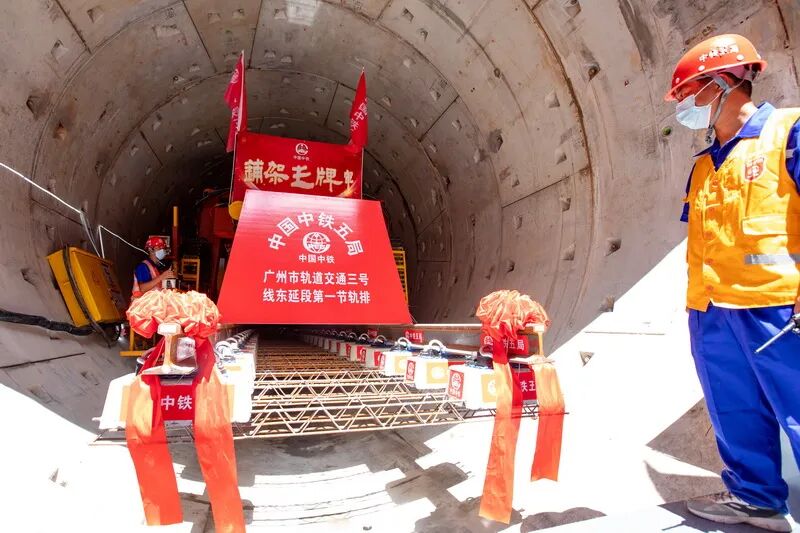 三号线东延段全长9.55公里,西起番禺广场站,沿亚运大道向东延伸至海傍站与地铁四号线换乘。为确保铺轨工作顺利进行,施工单位中铁五局的地铁建设者们不断调整场地功能布局、完善铺轨基地建设方案,坚持疫情防控、施工生产“两手抓”,稳步推进施工。