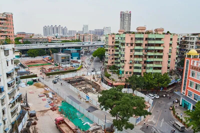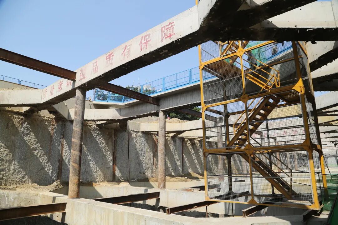 西村站建设历程长,建设过程困难重重、荆棘载途,受前期征拆、施工场地狭小、周边建筑物众多、工法复杂、管线迁改和交通疏解倒边等因素影响,西村站的施工进度相对滞后。