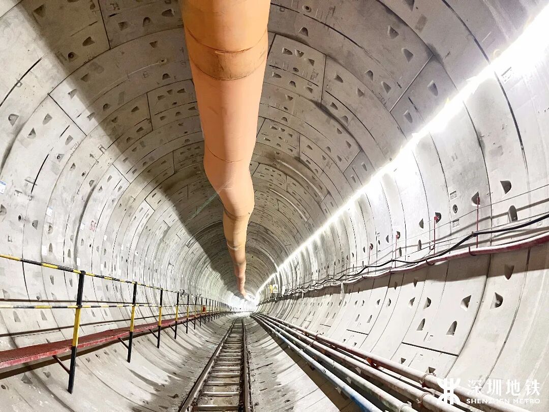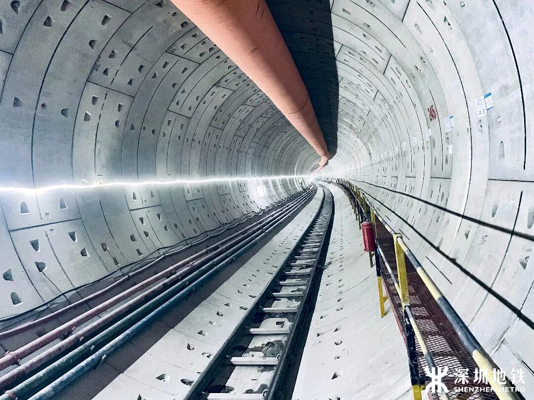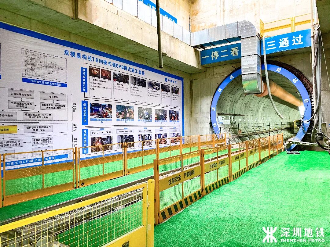 区间采用4台双模(EPB/TBM)盾构机施工,分别从留仙洞站和百旺港大站始发。自盾构始发以来,项目部持续加强现场安全质量管控、标准化建设、机械化作业等工作,通过优化刀具参数、控制掘进参数等措施,提高刀具破岩效率;发明防喷涌、皮带防漏渣等装置,提高施工工效;优化同步注浆工艺,控制管片拼装质量,确保工程质量。首次双模盾构模式转换11天完成,创下深圳地铁建设最快纪录。