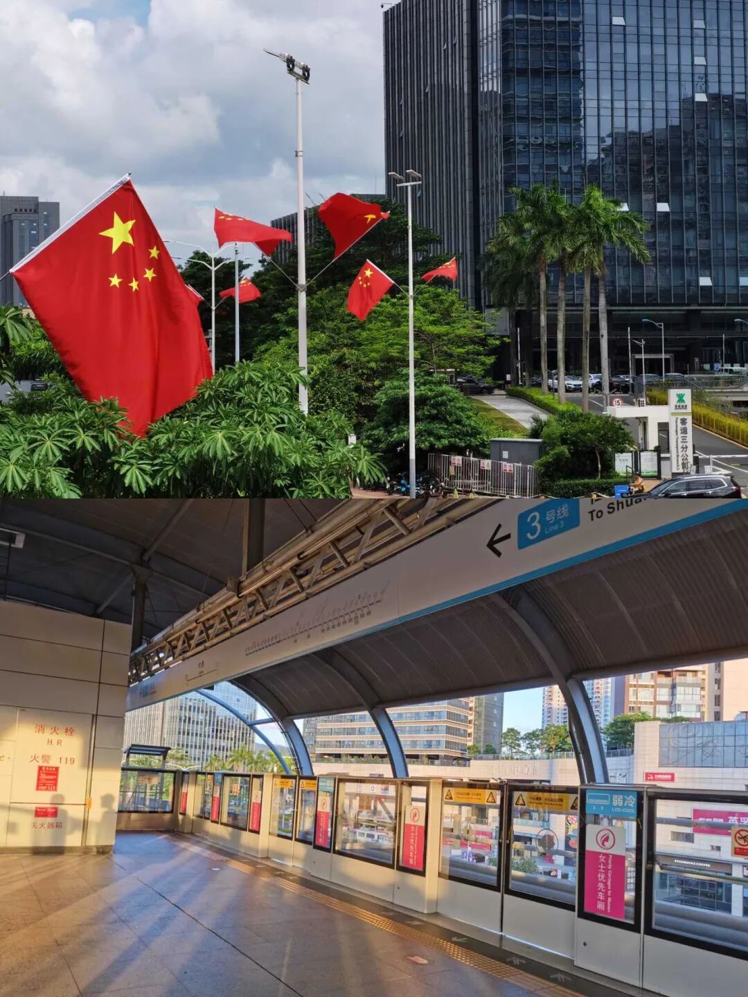 @我家有颗小榕树:每天清晨,我们怀揣着梦想,迎着阳光前往地铁站,活力的一天开始了。看着飘扬的五星红旗,那一抹中国红格外耀眼。我便知道,我追随的光,是五星红旗的星光!