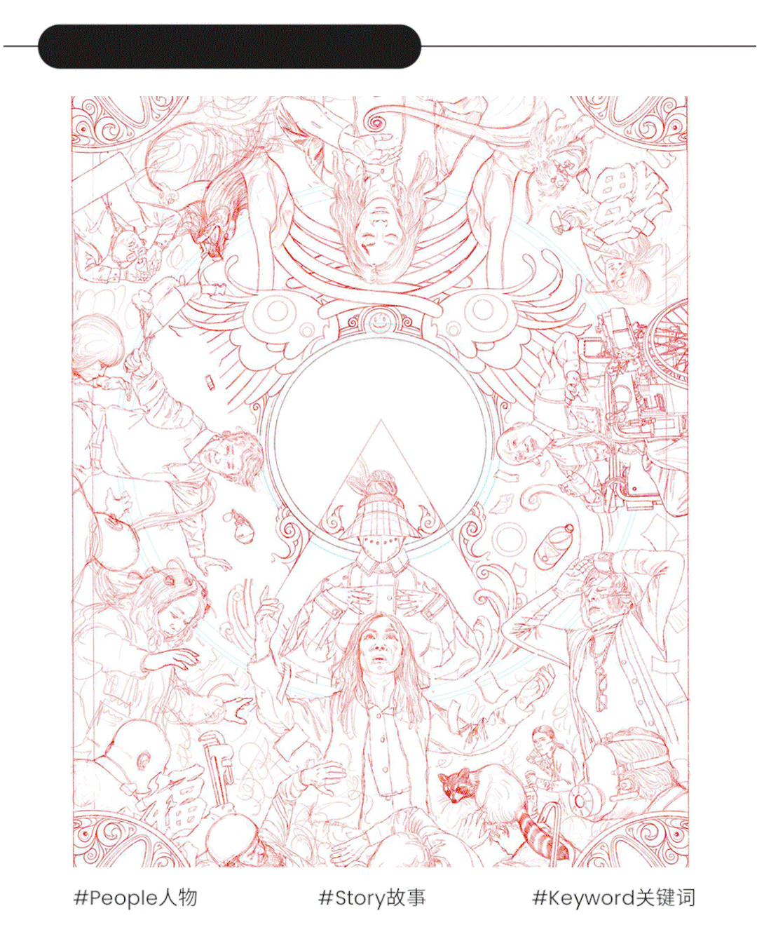 老牌影星再登荧幕、脑洞飞天的剧情、富有哲理性的温情内核,《瞬息全宇宙》有着很多令人惊喜的闪光点,不少人都被它高能的特效画面和脑洞所折服,但其中最天马行空的,还是要属美籍华裔艺术家James Jean为电影特别绘制的海报——华丽诡谲,繁复又极具细节的画作,吊足了观众的胃口。