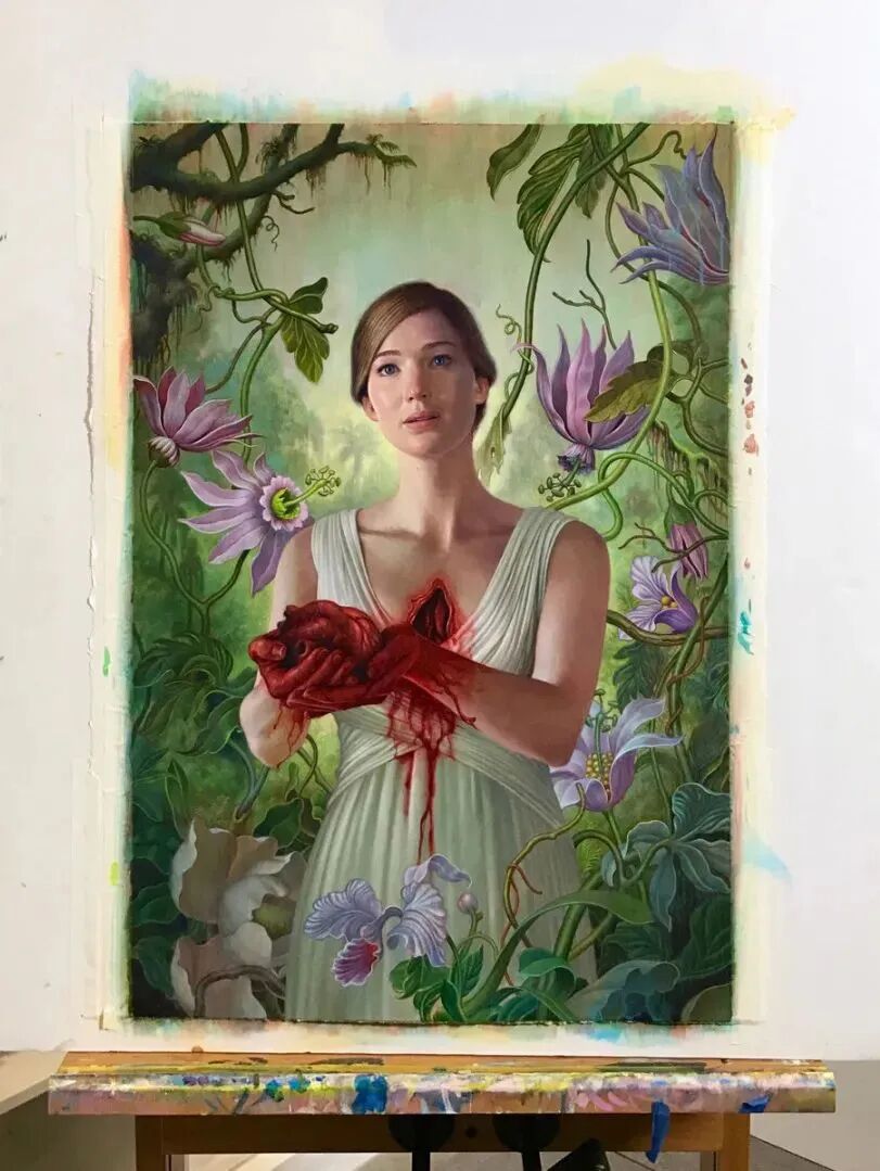 除《银翼杀手2049》外,奥斯卡最佳影片得主《水形物语》和电影《母亲!》,就连这次火爆外网的《瞬息全宇宙》的海报都是由James Jean亲笔手绘而成。
